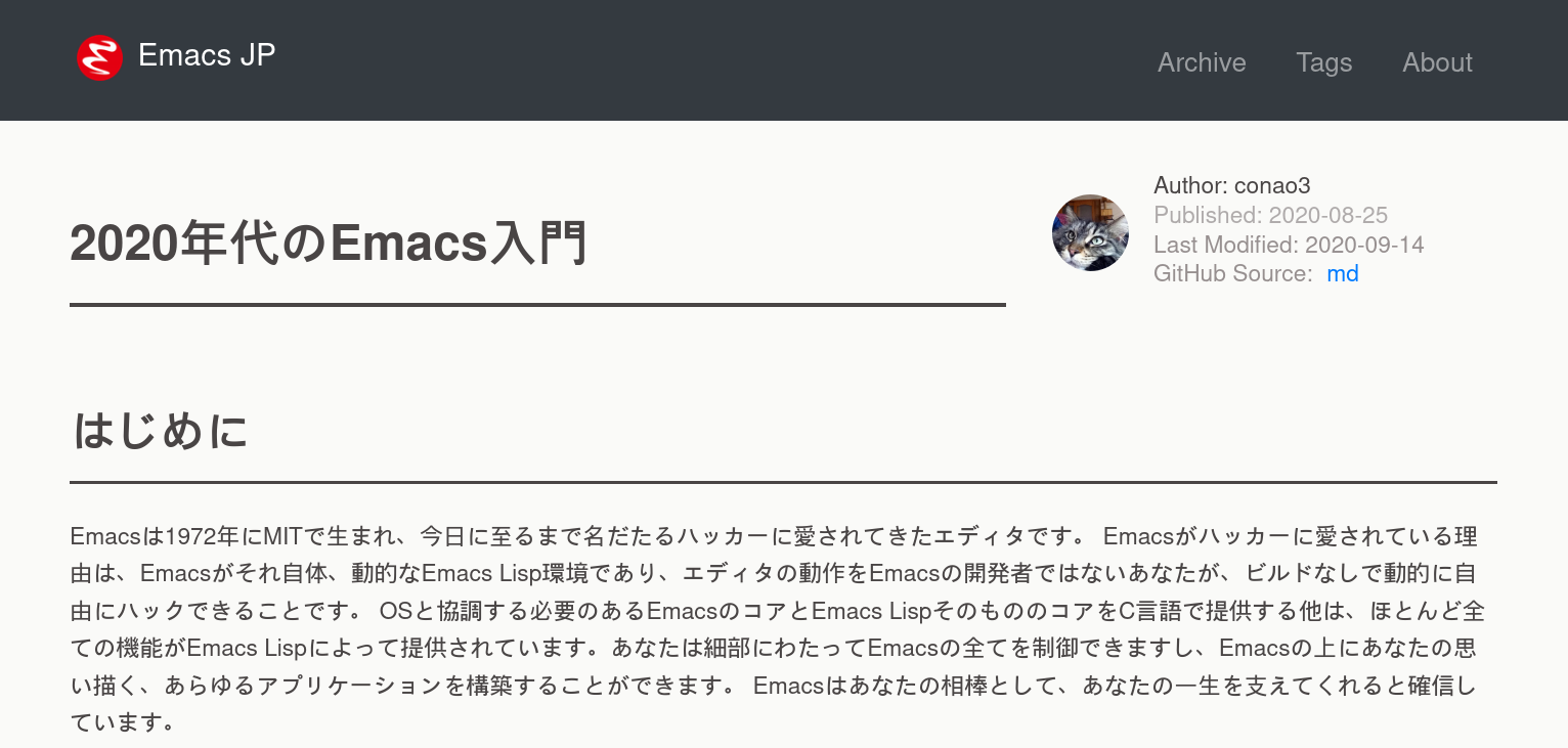 ここらへんで諦めてさっさとHugoとNetlifyで公開してしまえということで、きちんと整備されたツールを使わせてもらい、この度ようやくconao3.comでまともなコンテンツを提供できるようになりました。