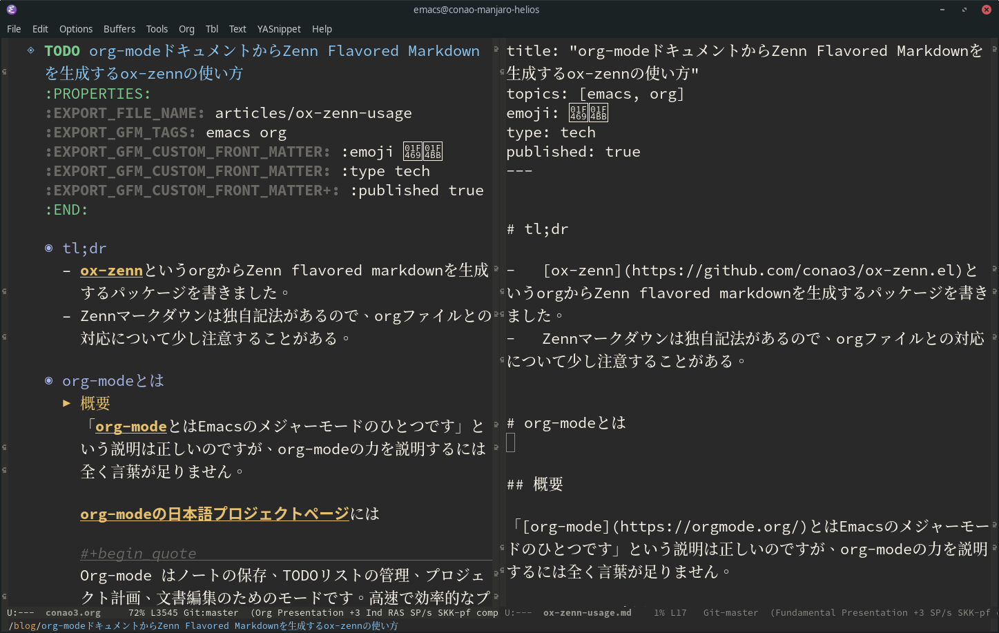 ox-zennの使い方 - https://zenn.dev/conao3/articles/ox-zenn-usage ↩︎