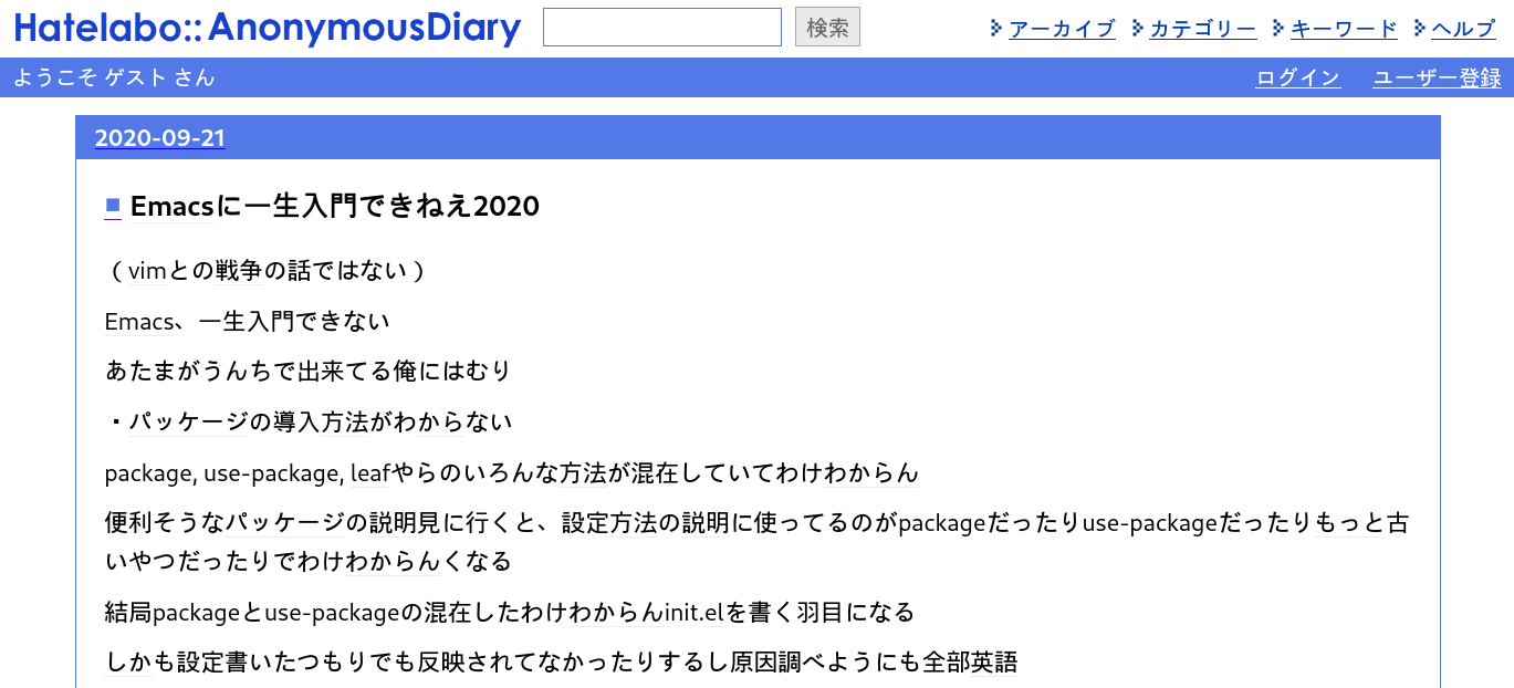 Emacsに一生入門できねえ2020 - https://anond.hatelabo.jp/20200921040234 ↩︎