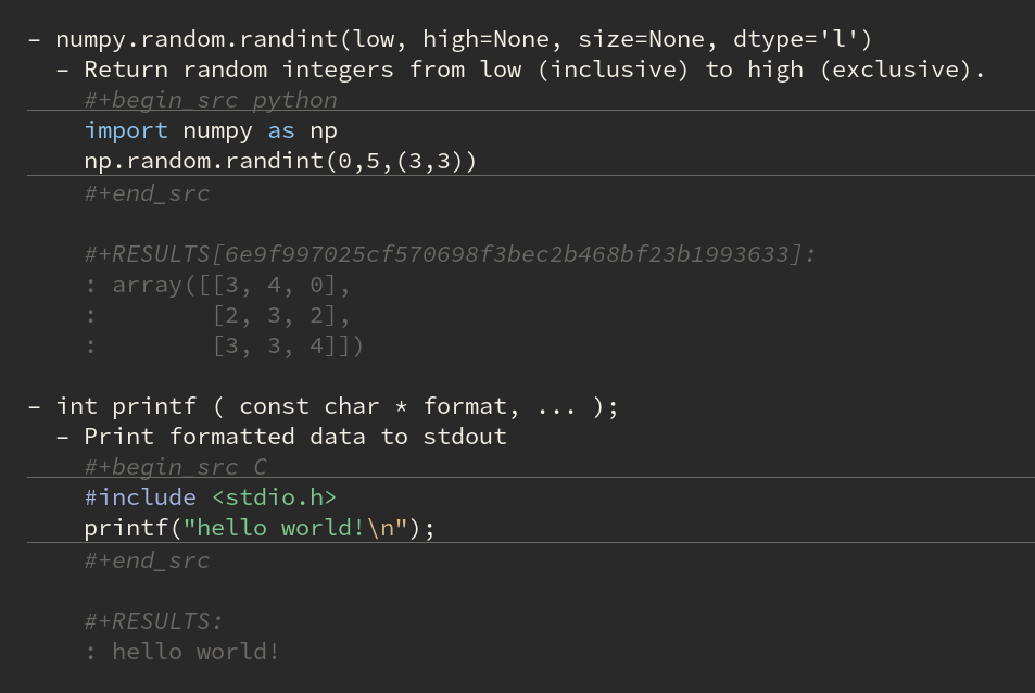 Eric Schulte, Dan Davison, Thomas Dye, et.al., “A Multi-Language Computing Environment for Literate Programming and Reproducible Research” https://www.jstatsoft.org/article/view/v046i03 ↩︎